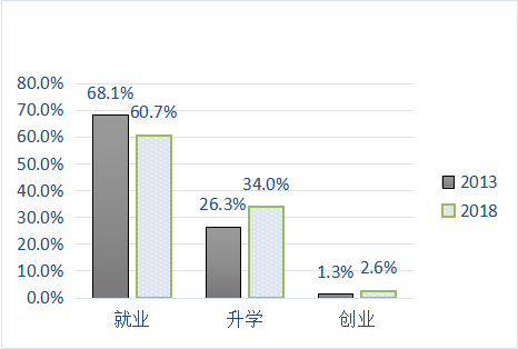 在中公考研最后的几套模拟卷中,也出现过大学生就业话题的作文。一如既往,柱形图依然是命题老师的最爱。如果考前仔细背诵柱形图模板,作文第一段是不难写的。根据这个柱形图,我们不难看出,在这五年的时间里,就业人数,增加了7.4%;升学人数增加了7.7%;创业人数增加了1.3%。升学人数是增加的最多的,第二段,主要分析这其中的原因。可以从大学生自身以及当前社会环境,就业压力大等角度来分析。第三段,总结预测,这种情形在未来几年会持续下去。给2020考生的备考建议,图表作文分析数据的走势是最重要的,中公考研的作文课程一定能够帮助到各位考生在考场快速写出作文。