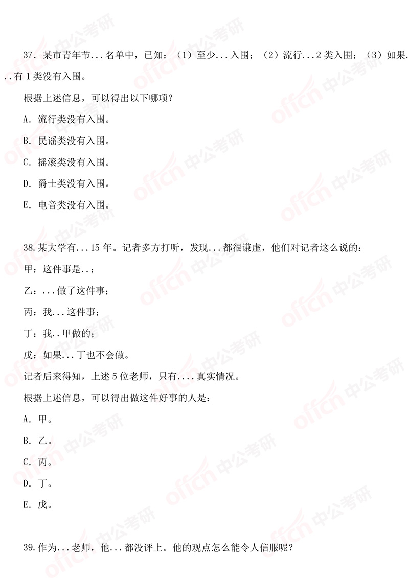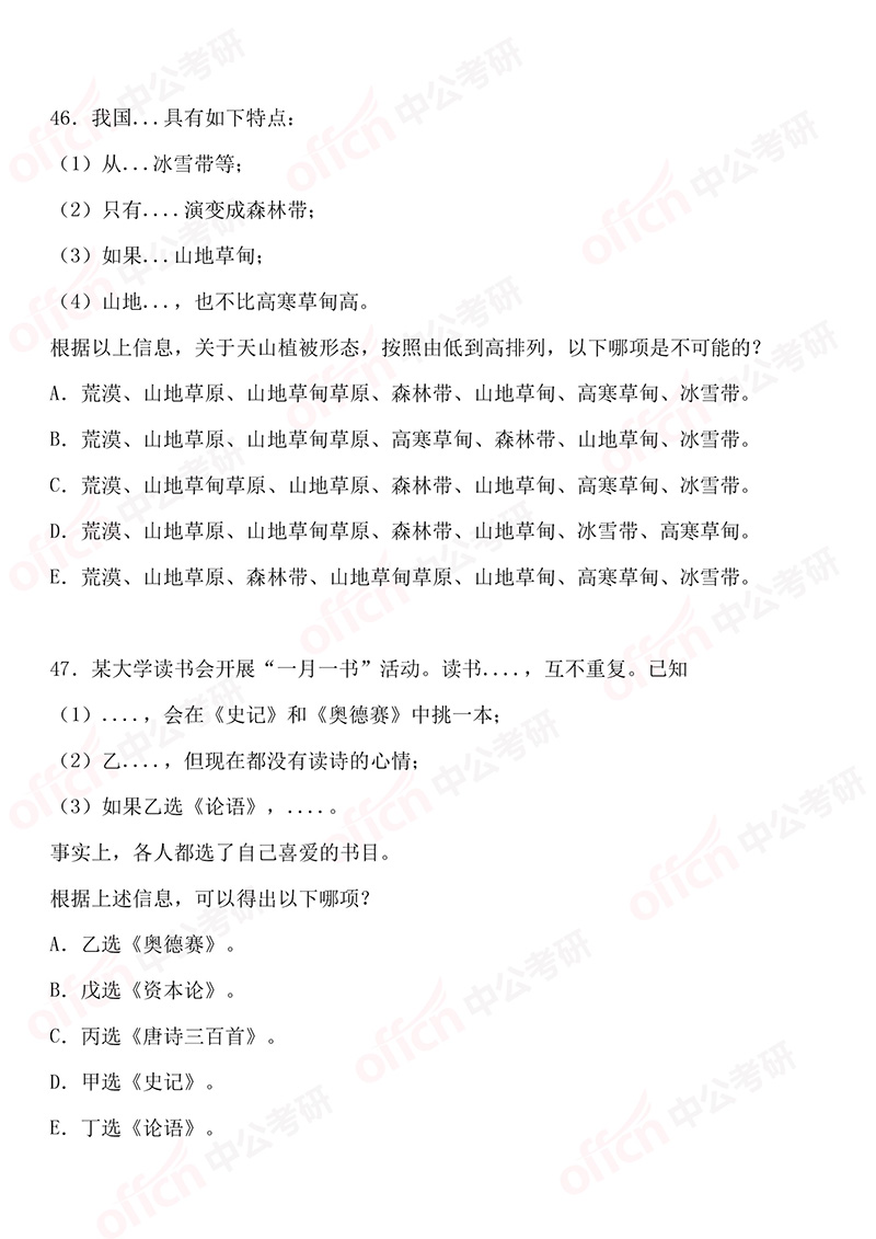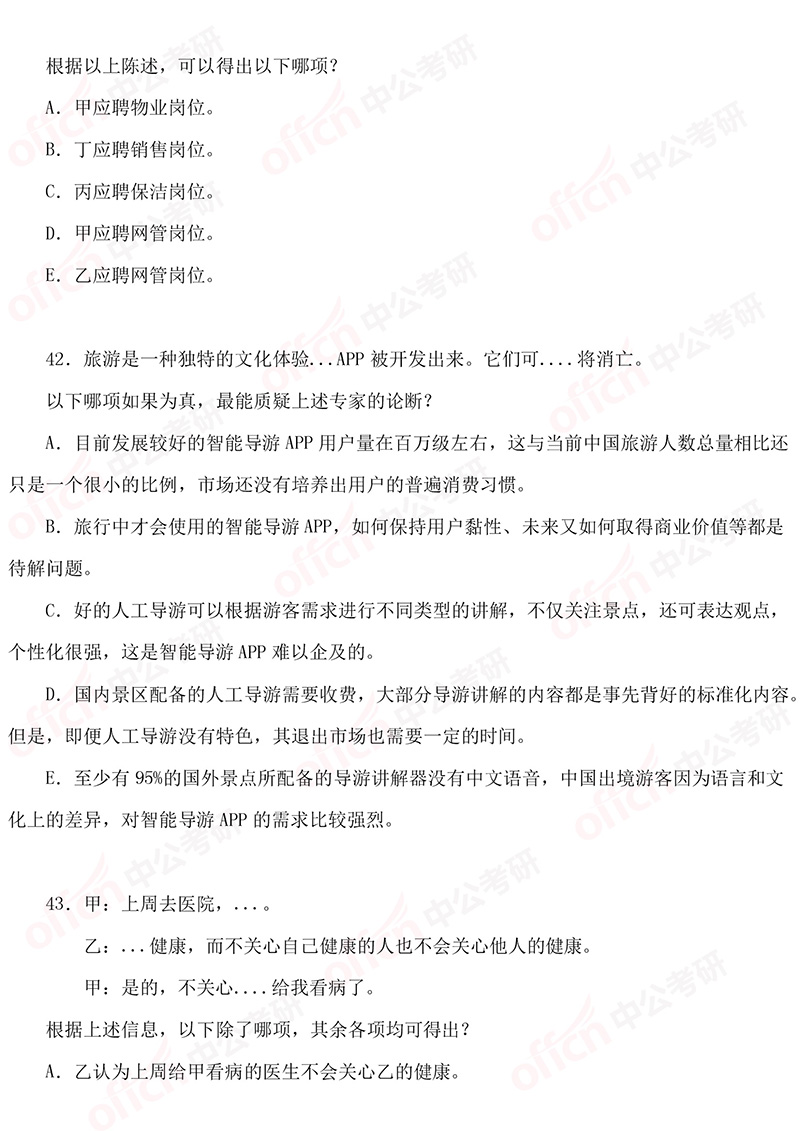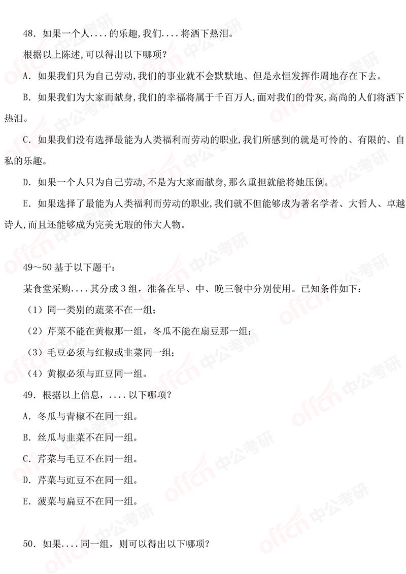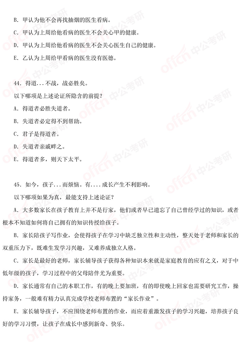 以上是中公考研为大家准备整理的2019年考研管综逻辑试题答案及试题解析(完整版))”的相关内容。另外,为了帮助考生更好地复习,中公考研为广大学子推出 2020考研寒假体验营、VIP 1对1,2020考研乐学周末面授系列备考专题,中公考研针对每一个科目要点与每年的大纲进行深入并具有针对性的指导分析,欢迎各位考生了解咨询。同时,中公考研一直为大家推出考研直播课堂 ,足不出户就可以边听课边学习,为大家的考研梦想助力!