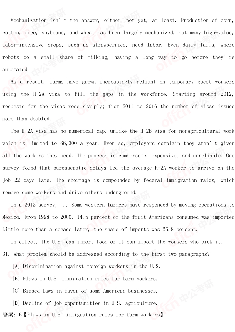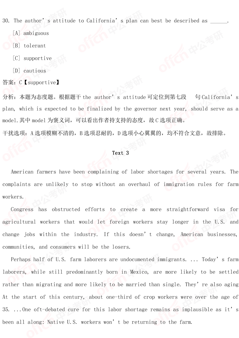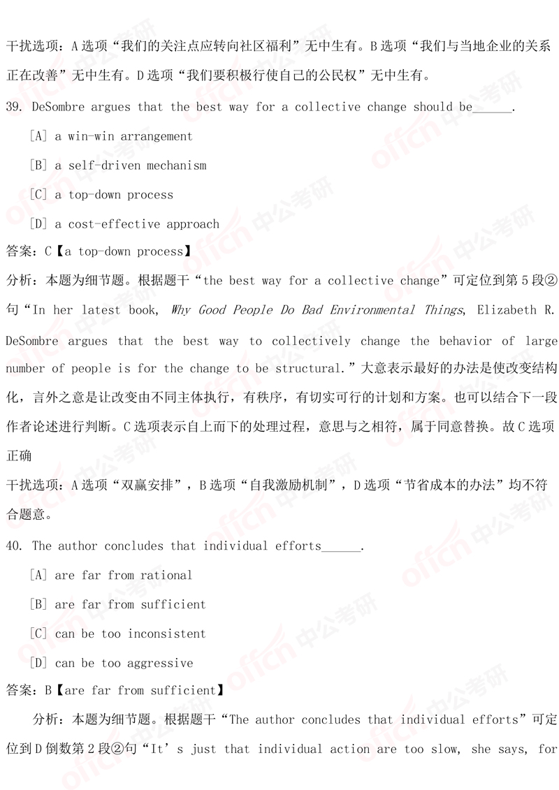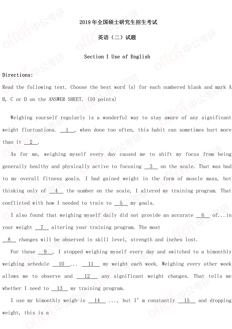 以上是中公考研为大家准备整理的2019考研英语(二)答案及试题解析(完整版)”的相关内容。另外,为了帮助考生更好地复习,中公考研为广大学子推出 2020考研寒假体验营、VIP 1对1,2020考研乐学周末面授系列备考专题,中公考研针对每一个科目要点与每年的大纲进行深入并具有针对性的指导分析,欢迎各位考生了解咨询。同时,中公考研一直为大家推出考研直播课堂 ,足不出户就可以边听课边学习,为大家的考研梦想助力!